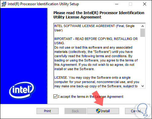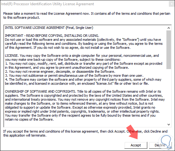 Se desplegará lo siguiente. Allí pulsamos en el botón "Accept" con el fin de autorizar el análisis del procesador.