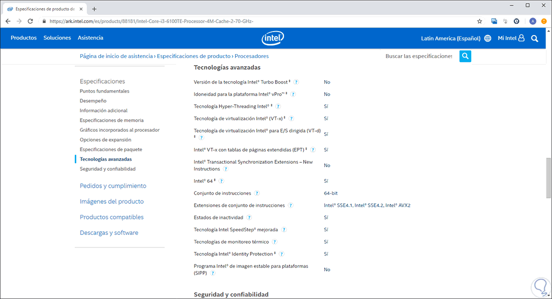 Para conocer este punto, debemos ir al siguiente sitio oficial de Intel: