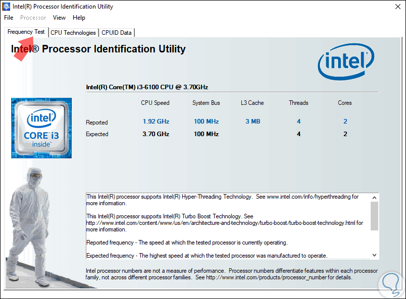 - Realiza una prueba de frecuencia con el fin de validar que el procesador esté funcionando a la velocidad especificada y correcta.