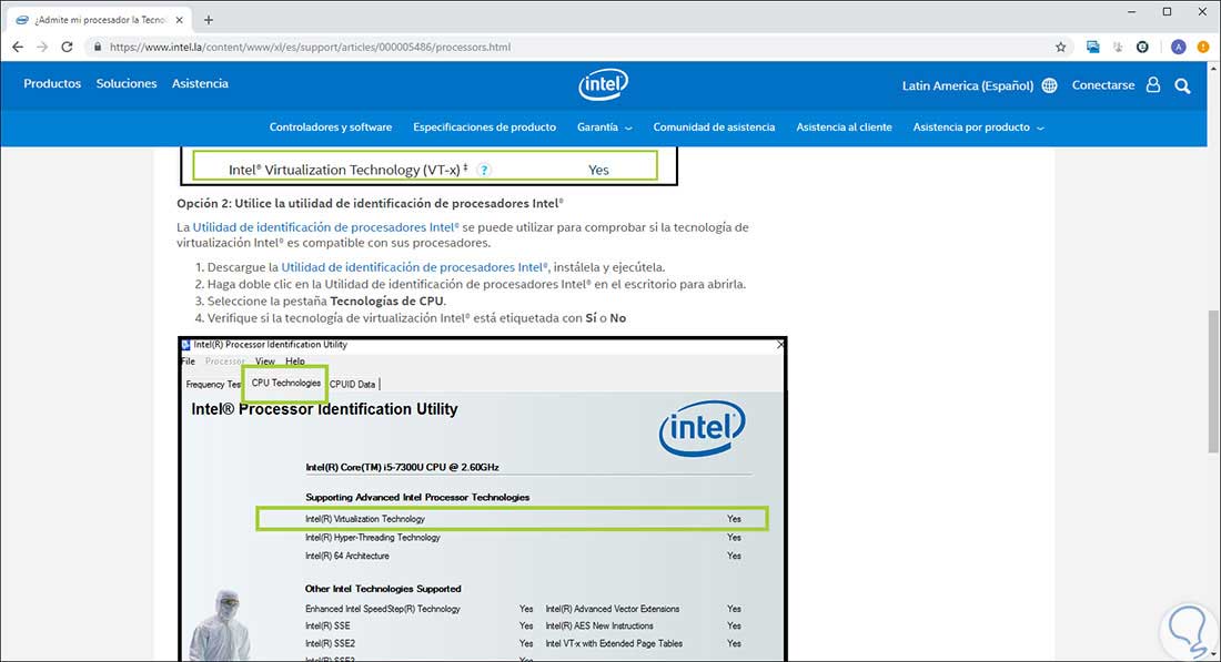 Allí verificaremos si este procesador es o no compatible con la virtualización de Intel: