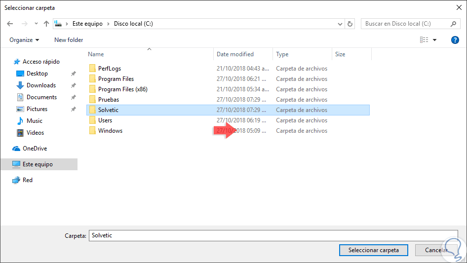 Para añadir una nueva carpeta excluida, damos clic en el botón “Add an excluded folder” y en la ventana emergente seleccionaremos la carpeta deseada. Pulsamos en el botón “Seleccionar carpeta” una vez este seleccionada la carpeta a añadir.