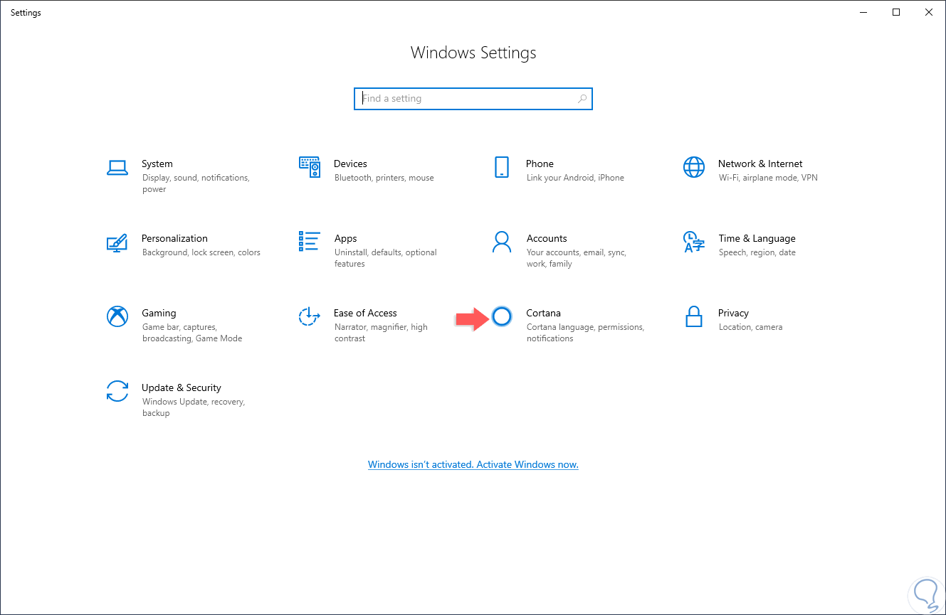 Para dar inicio a este proceso iremos al menú Inicio y allí seleccionamos la utilidad “Configuración” donde veremos lo siguiente: