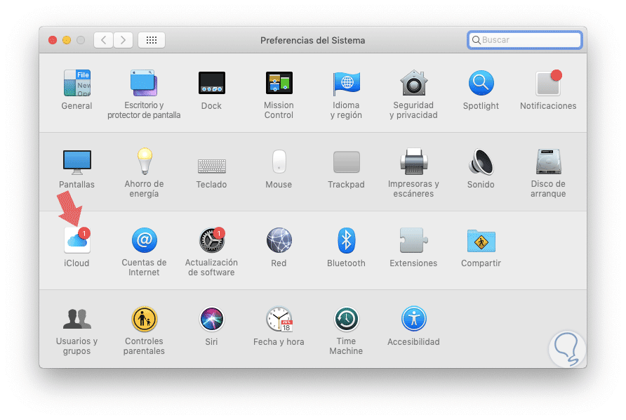 Veremos lo siguiente. Allí damos clic en la opción iCloud.