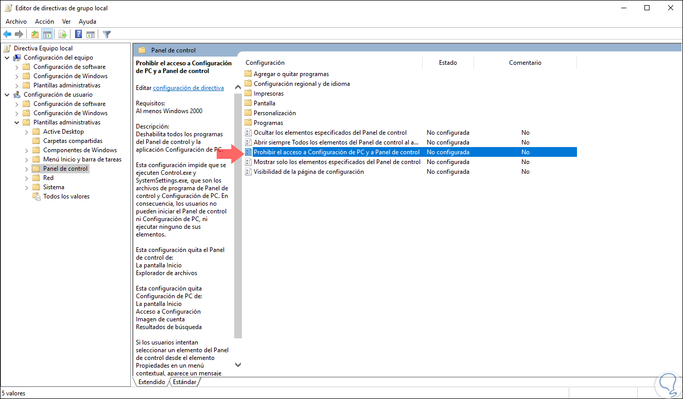 1. Cómo activar o desactivar Configuración y el panel de control con editor de políticas de grupo GPO Windows 10