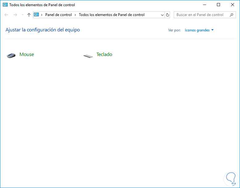 - Si la visión es de iconos veremos que solo se muestran los que hemos habilitado, el ratón y el teclado.