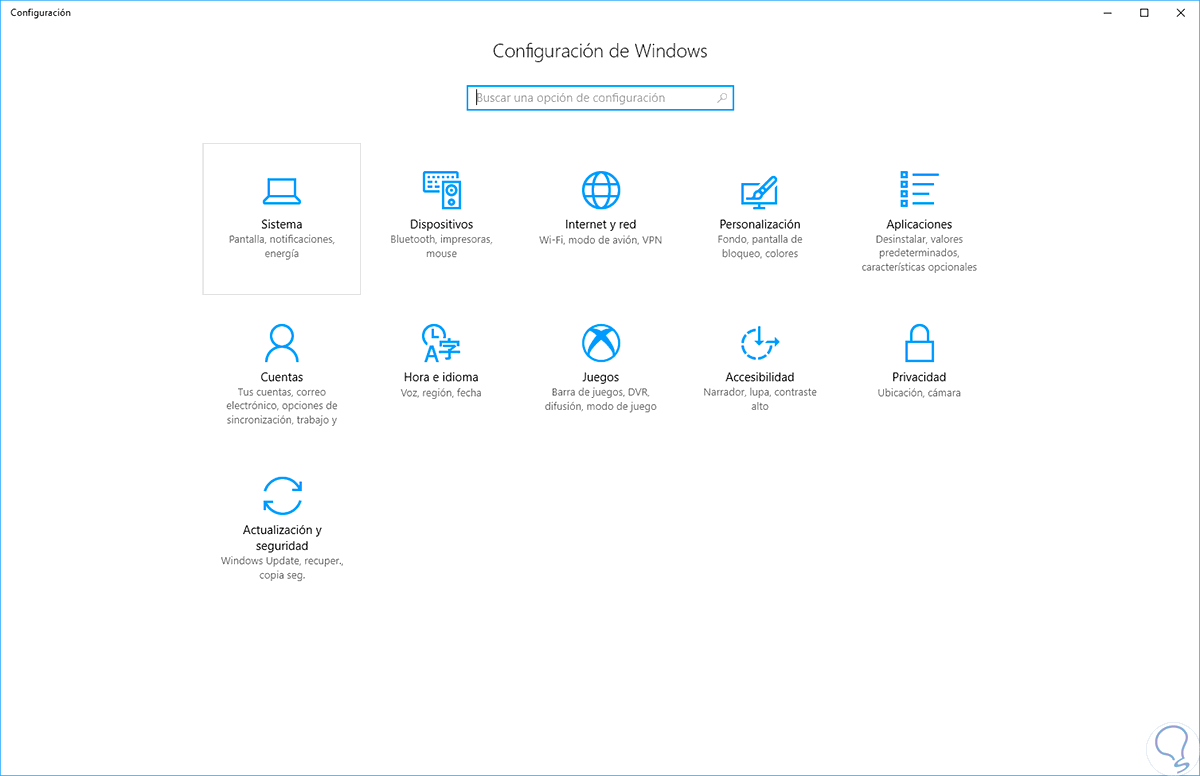 Cuenta con un aspecto mucho más moderno y, al igual que el panel de control, despliega categorías con funciones específicas para llevar a cabo dentro de Windows 10 donde podremos realizar tareas como: