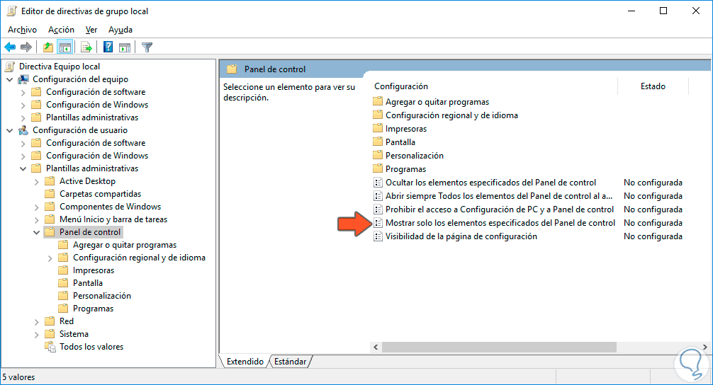 Vamos a limitar las funciones a las que se puede acceder en el Panel de control sin tener que deshabilitarlo por completo.