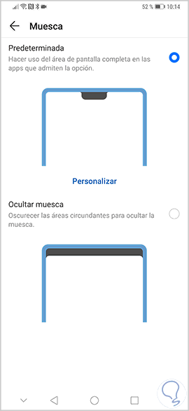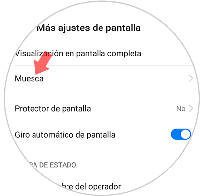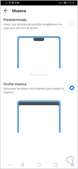 Ahora veremos los diferentes ajustes que podemos configurar en la pantalla de nuestro Huawei. En este caso tenemos que seleccionar "Muesca".