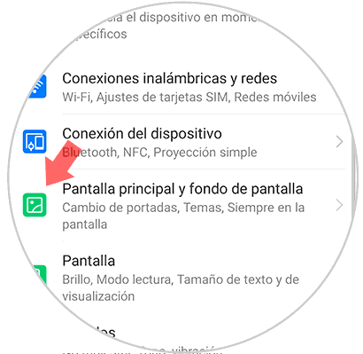 Una vez aquí, tienes que seleccionar "Pantalla principal y fondo de pantalla"