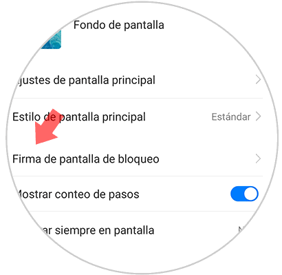 Una vez aquí, verás varias opciones. En este caso debes seleccionar "Firma de pantalla de bloqueo"