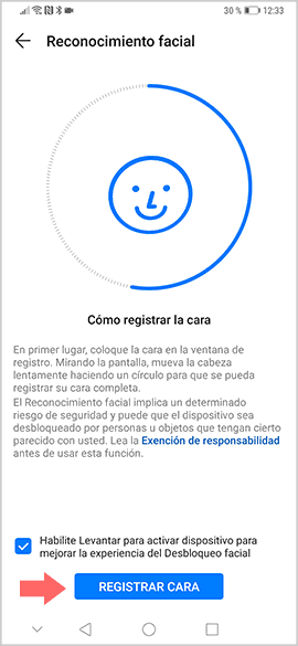 Ahora veremos que aparece una nueva ventana en la que nos encontramos con un botón de la parte inferior que pone "Registrar cara". Debemos pulsar sobre el.