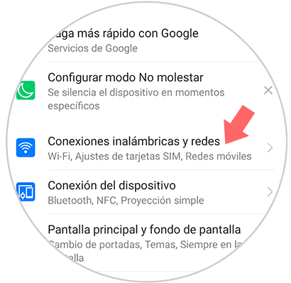 Una vez dentro de los ajustes, debes seleccionar la opción de “Conexiones inalámbricas y redes”