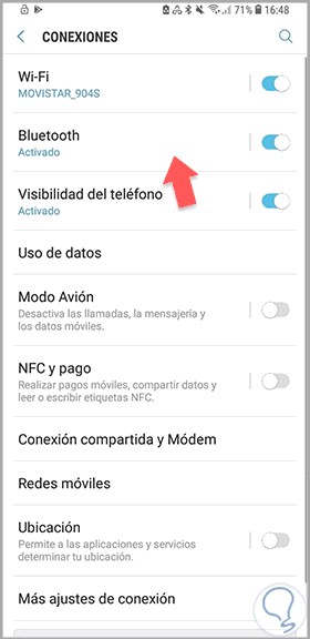 Habilitamos el “Bluetooth” y pulsamos en la opción para ver su configuración.