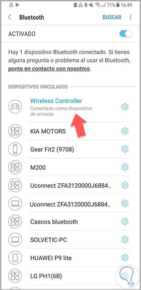 Ahora en “Dispositivos vinculados” podrás ver que se ha detectado nuestro mando como dispositivo de entrada. Ahora si deslizamos y usamos los controles del mando podremos ver como se controla también la pantalla del teléfono.