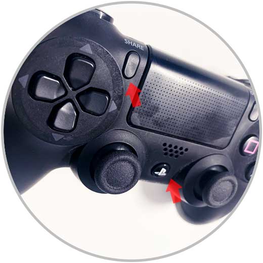 Lo primero que haremos será mantener presionados a la vez el botón de PS central y el botón de “Share” hasta que la consola entre en modo emparejamiento, es decir, una luz blanca empezará a parpadear en la parte posterior.