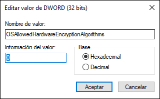 Este nuevo valor será llamado “OSAllowedHardwareEncryptionAlgorithms”: