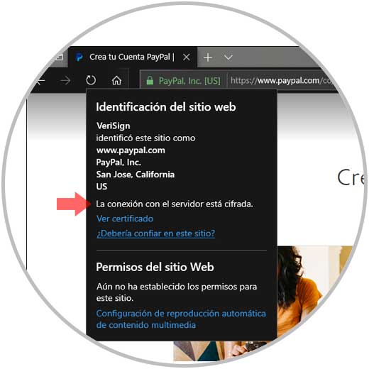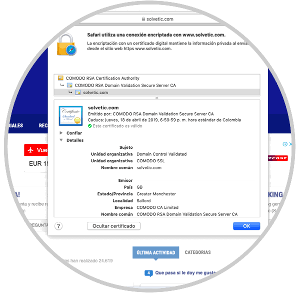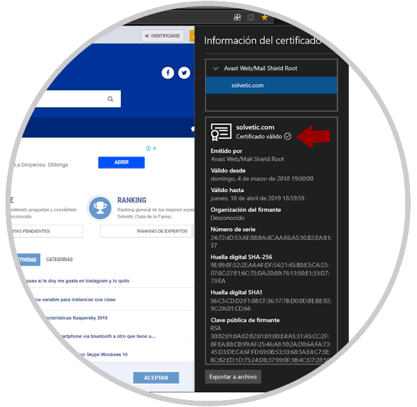 Al pulsar allí se desplegará el respectivo certificado del sitio: