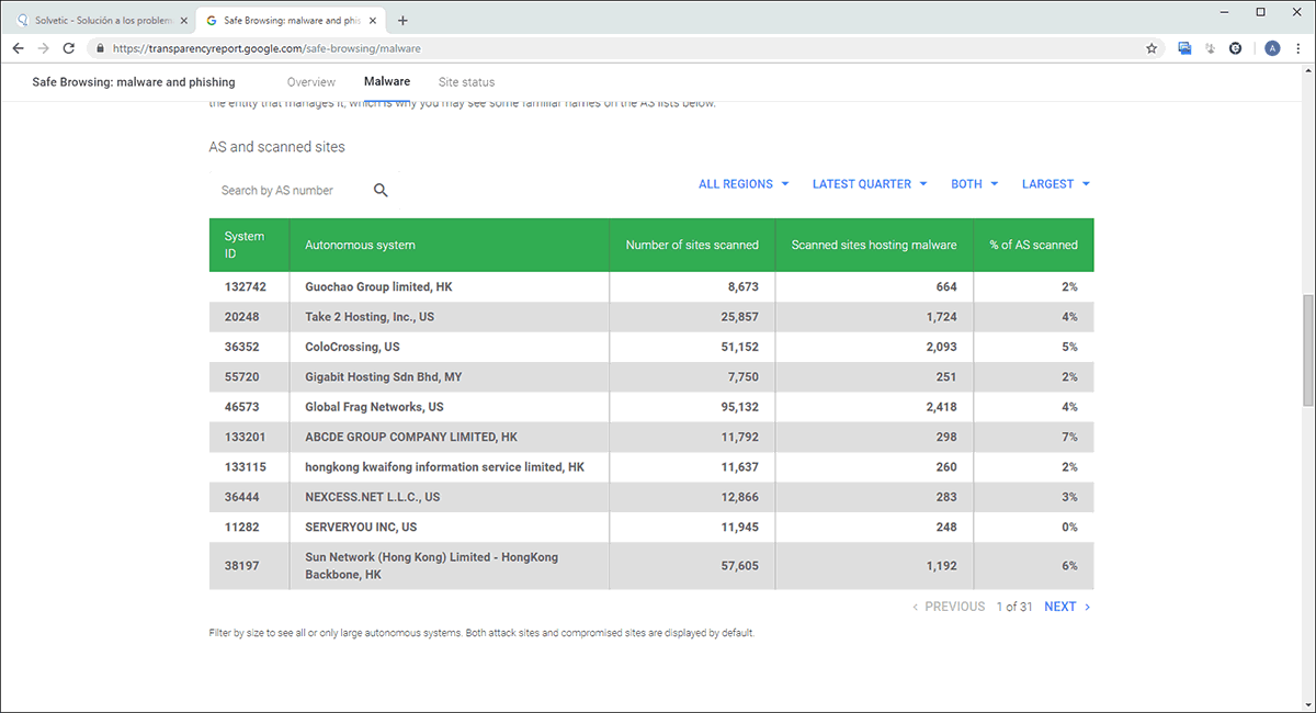 5. Cómo acceder al Google Safe Browsing Transparency Report y detectar webs fraudulentas
