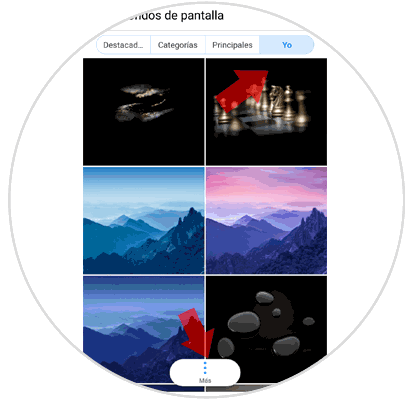 Ahora aparecerás en esta nueva pantalla. En la barra superior pulsa en “Yo”, aquí verás fondos del terminal que puedes establecer como cualquiera de estos dos tipos de fondo. Pulsa sobre el que quieras establecer; y si no quieres establecer un fondo y quieres poner una foto de tu móvil pulsa en “Más” en la parte inferior de la pantalla.