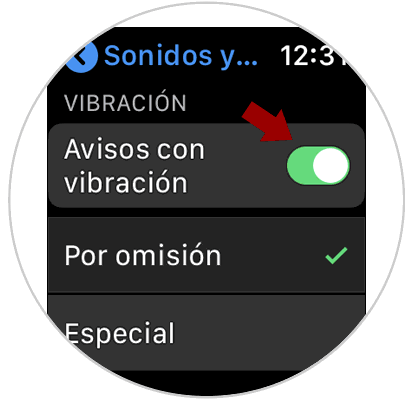 Una vez aquí dentro, puedes activar diferentes opciones. La primera que debes activar es “Avisos con vibración”. De este modo cada vez que tengas un nuevo aviso, el reloj emitirá una vibración. Puedes elegir entre las dos disponibles.
