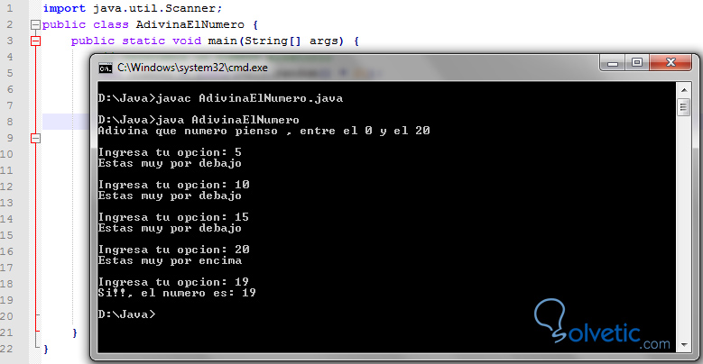 System.out.println("Adivina que numero pienso , entre el 0 y el 20");