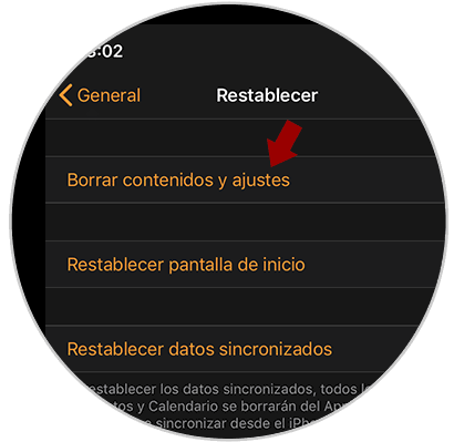 Ahora verás que aparece un botón que pone “Borrar contenidos y ajustes". Debemos hacer clic sobre el.