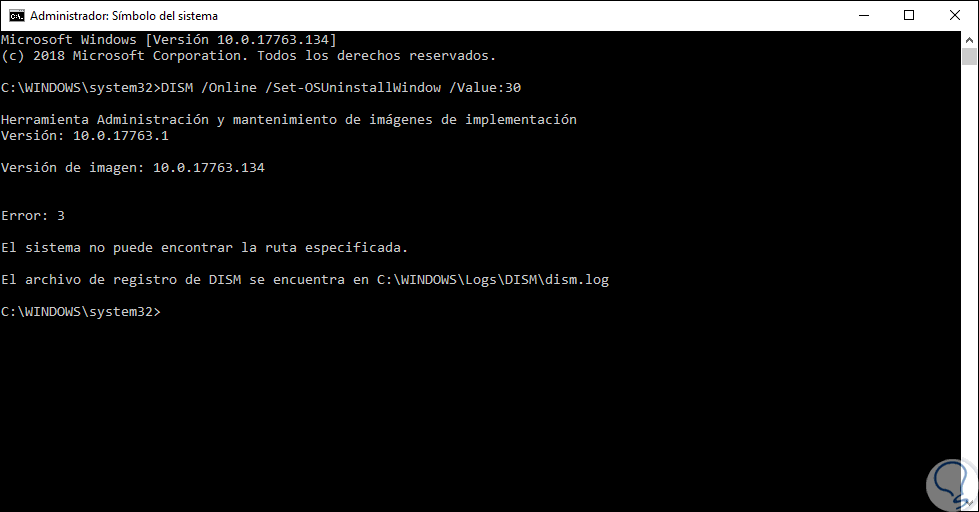 Es posible que en algunas situaciones el resultado sea el error 3. Esto se debe a que no hay una versión anterior de los archivos de Windows 10 en el equipo porque ya pasó el periodo de los 10 días.