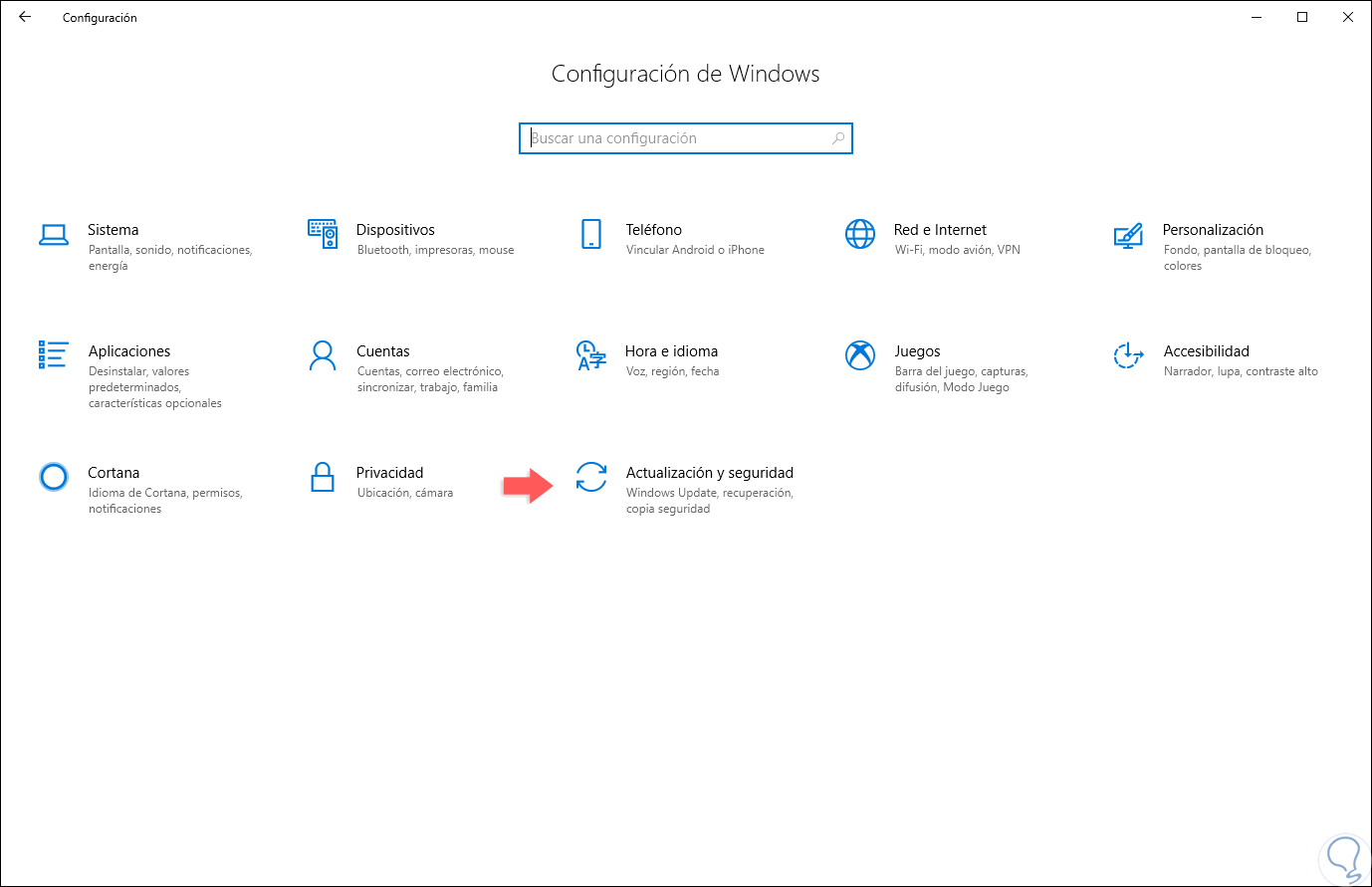 Para acceder a este retroceso debemos ir al menú “Inicio / Configuración” donde veremos lo siguiente: