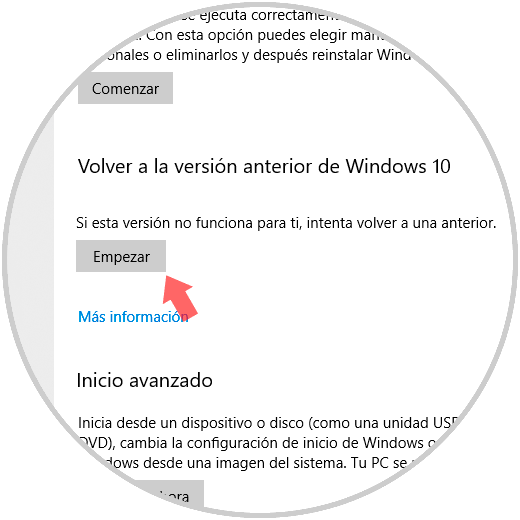1. Restaurar versión anterior después de 10 días en Windows 10