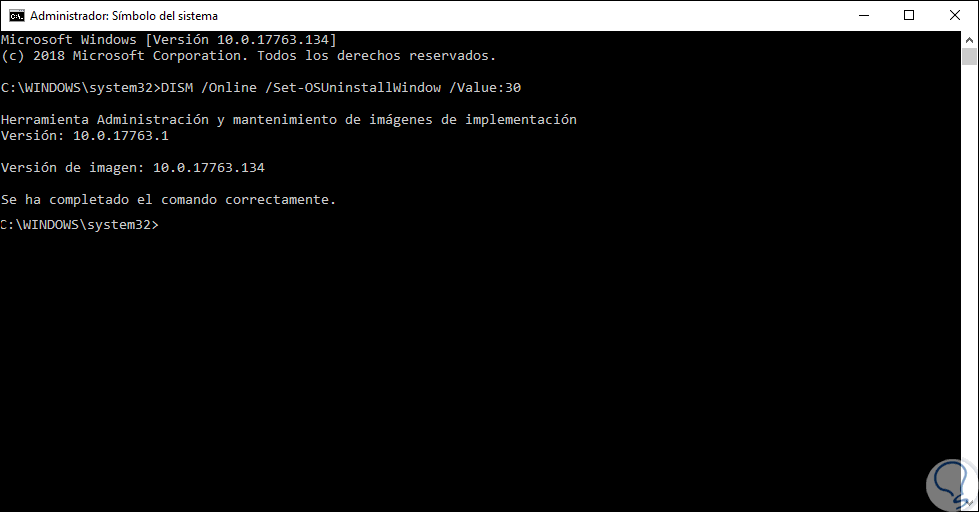 DISM /Online /Set-OSUninstallWindow /Value:30