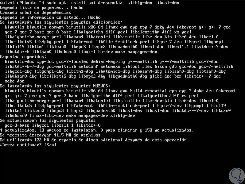 Ahora vamos a instalar las dependencias las cuales son las herramientas de desarrollo o elementos esenciales de compilación, así como otros paquetes necesarios, para ello ejecutamos alguno de los siguientes comandos: