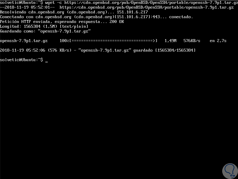 Una vez realizado esto, vamos a descargar la última versión de OpenSSH ejecutando la siguiente línea: