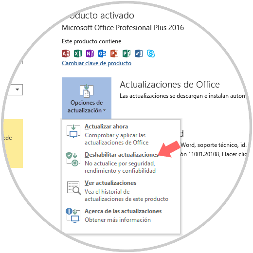 3. Desactivar actualizaciones automáticas de Office usando Office