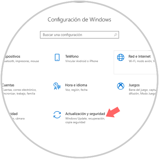 Veremos lo siguiente. Allí vamos a la categoría "Actualización y seguridad"