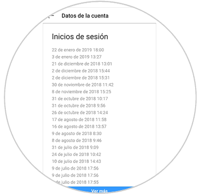 Verás los inicios de sesión más recientes que se han producido en la App y desde qué dispositivos.