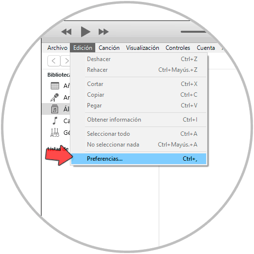 Abrimos iTunes y pulsamos en Edición y después en Preferencias