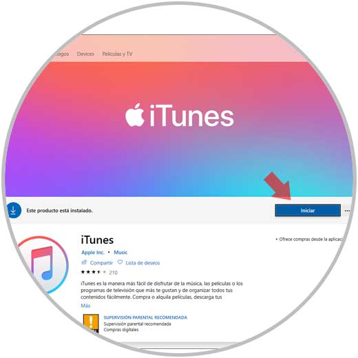 Si iTunes fue instalado desde la tienda de Windows 10: