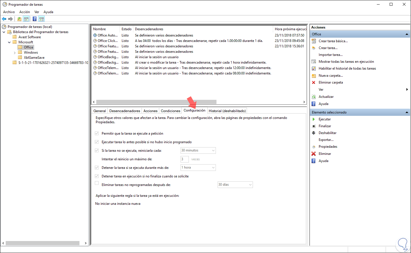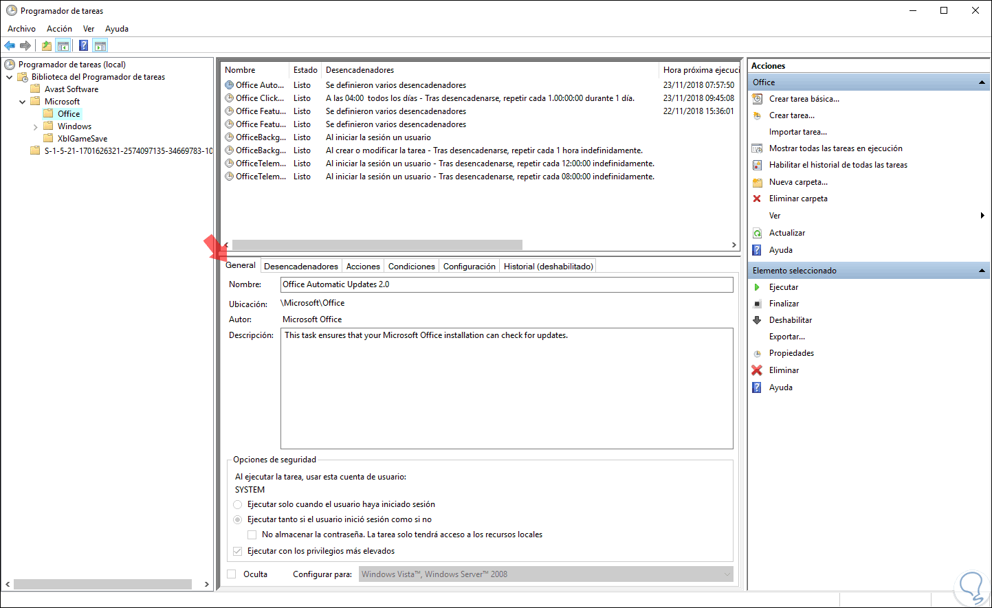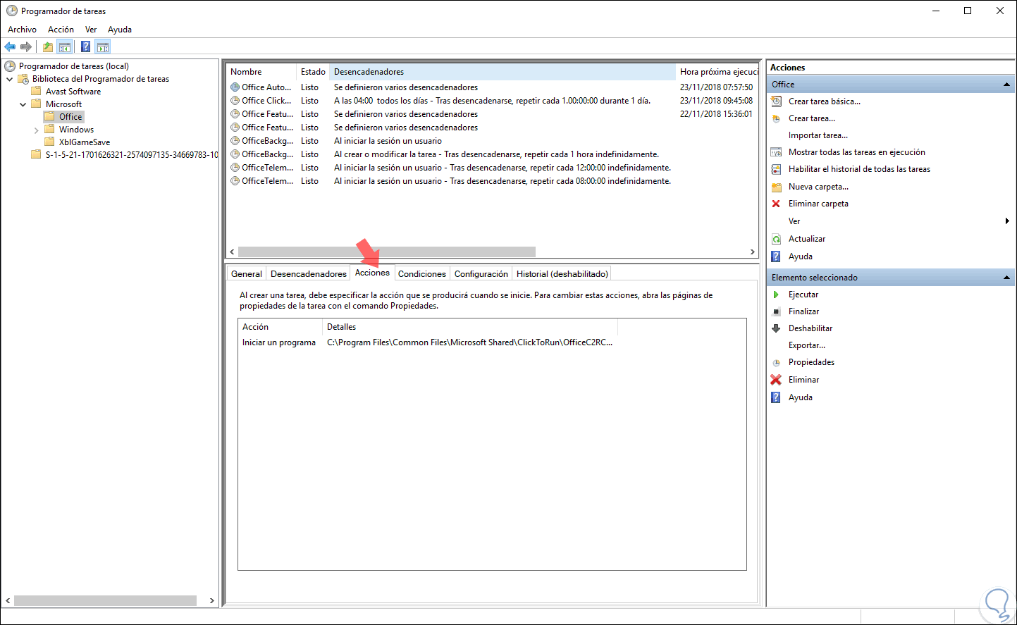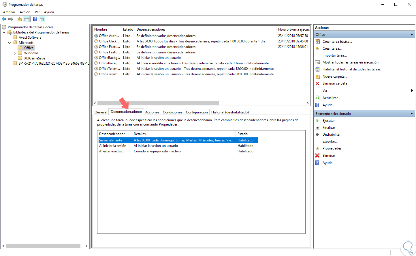 Dentro del entorno del Programador de tareas encontramos