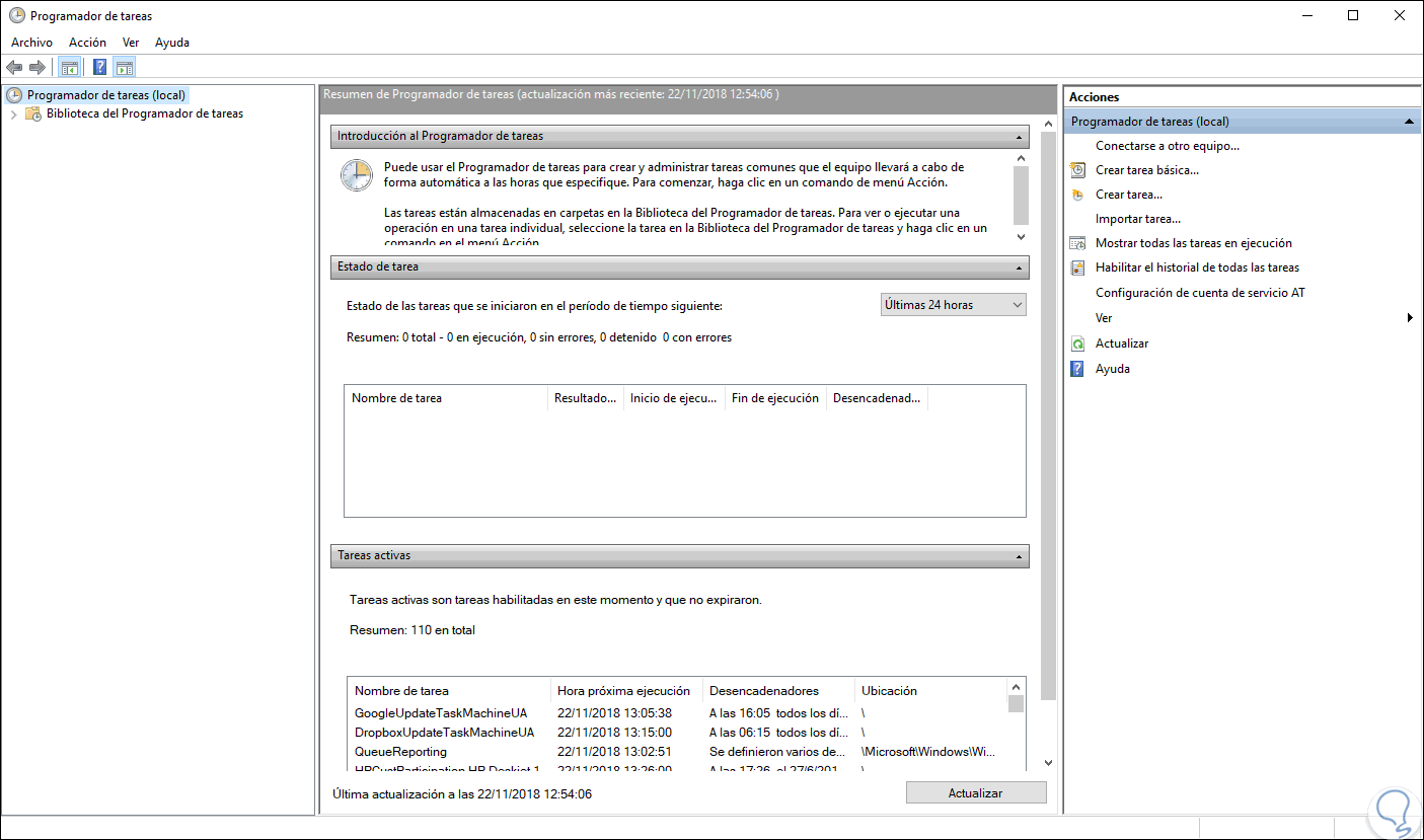 Al acceder al Programador de tareas este será su entorno.