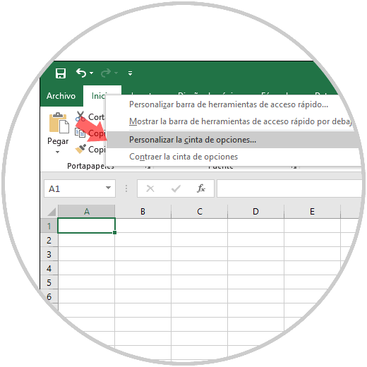 Para esto damos clic derecho sobre la cinta de opciones y allí seleccionamos la opción "Personalizarla cinta de opciones":