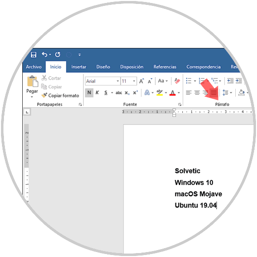 Para realizar este tipo de lista, abrimos un nuevo documento de Word 2019 y vamos al menú "Inicio" e iremos al grupo "Párrafo".