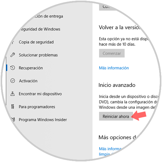 2. Acceder a las opciones avanzadas a través de Configuración en Windows 10