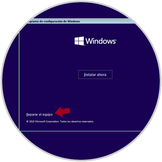 Se desplegará esta ventana. Allí pulsamos en la línea "Reparar el equipo".