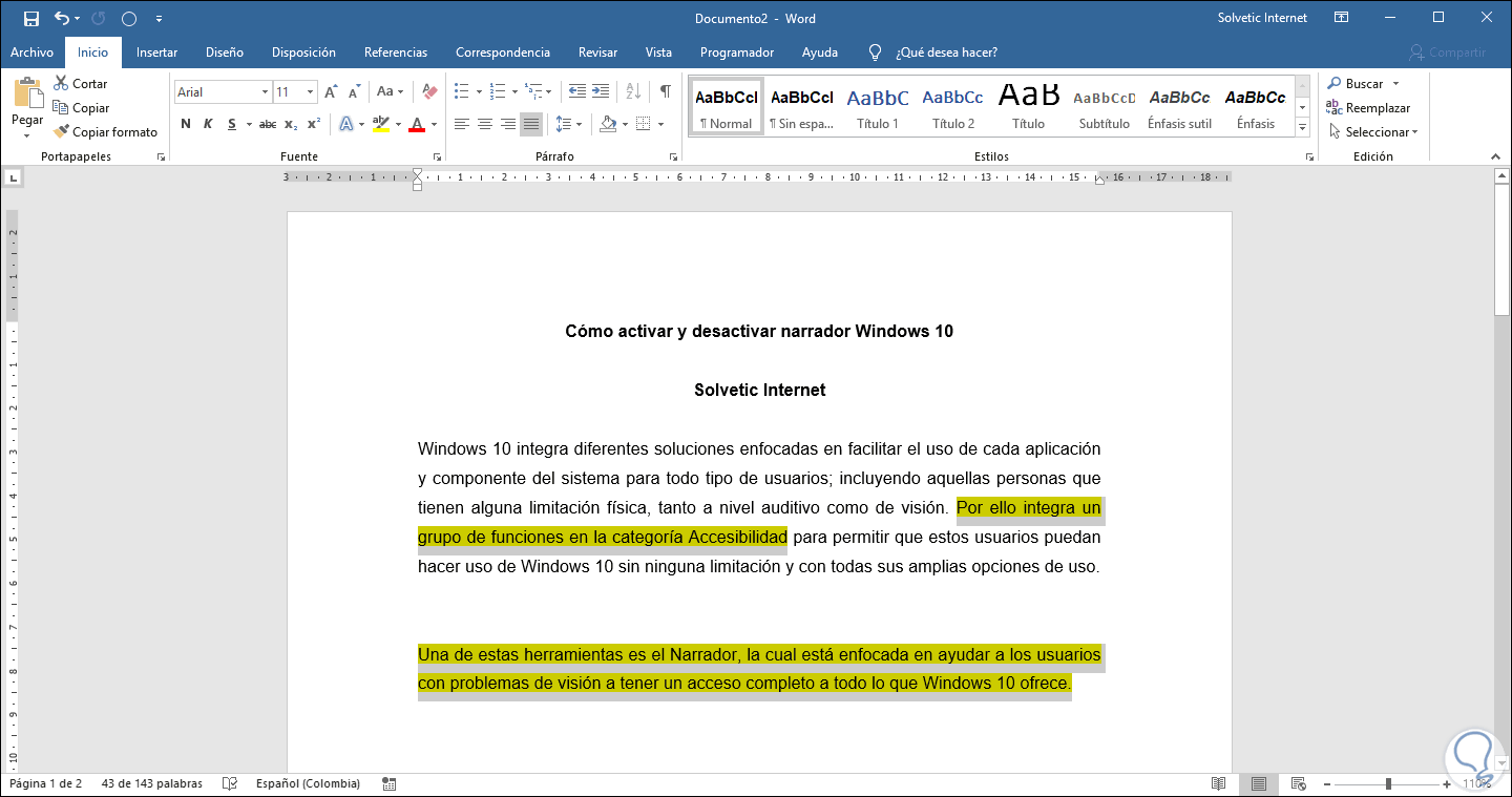 Por defecto el color con el cual se resalta el texto es amarillo, pero podemos usar otro si así lo deseamos, resaltaremos el texto que deseamos copiar.