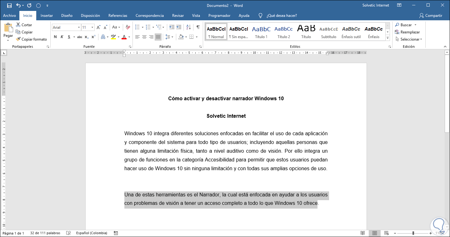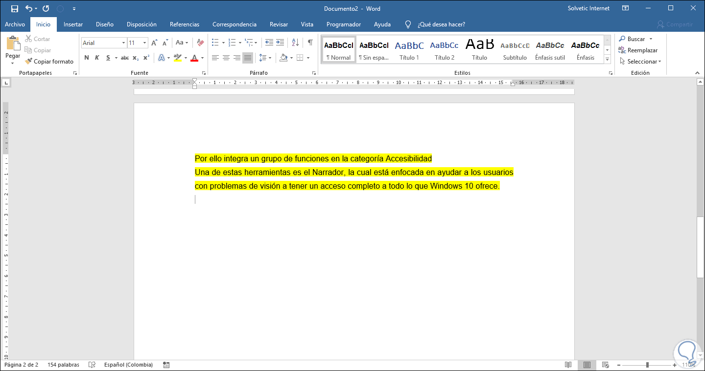 Al momento de pegar el contenido, con o sin el formato original, podremos ver que se ha pegado solo el texto resaltado en el documento original: