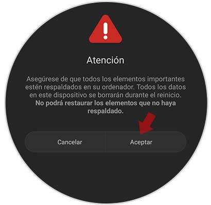 Recibirás un aviso para notificarte que esta acción derivará en la pérdida de tus datos. Pulsa en “Siguiente”.