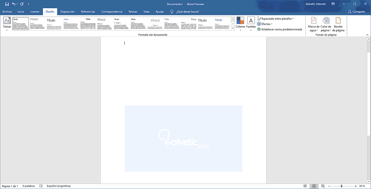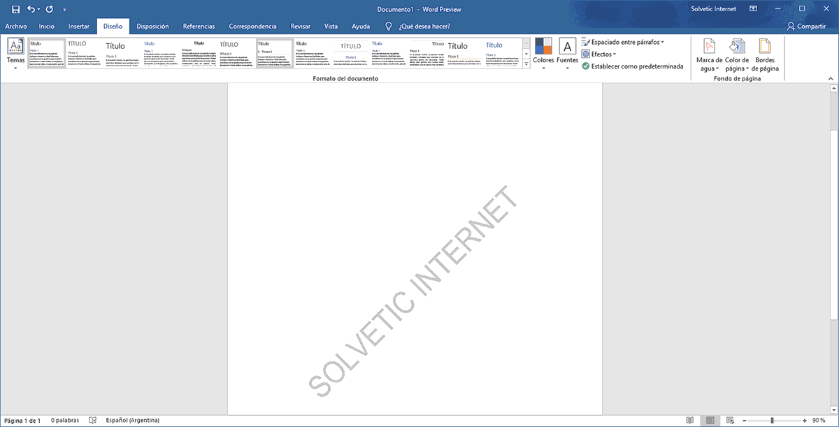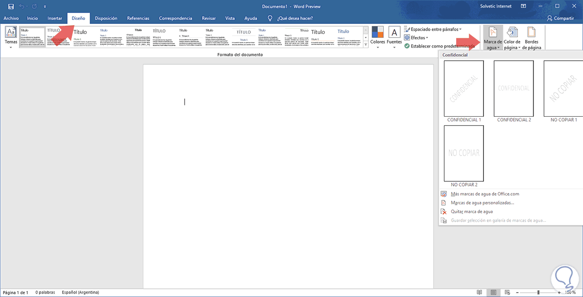 Esta es otra de las opciones disponibles en Word 2019, agregar una marca de agua a una sola página del documento activo.