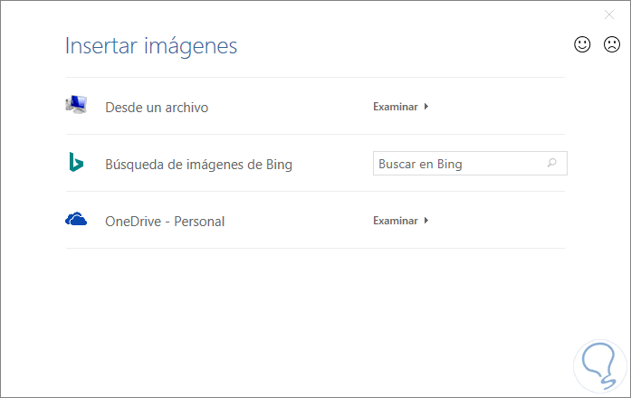 Como vemos, podemos seleccionar una imagen del equipo loca, desde el buscador Bing o desde nuestra cuenta de OneDrive.