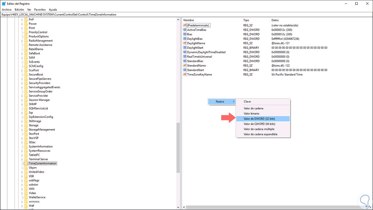 7. Agregar el valor DWORD RealTimeIsUniversal en el Editor del Registro en Windows 10 para solucionar error al sincronizar hora