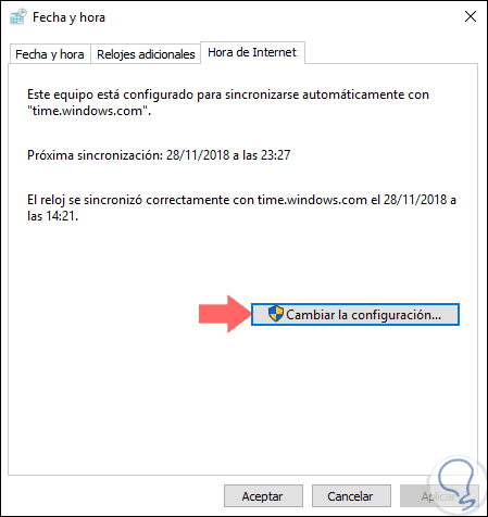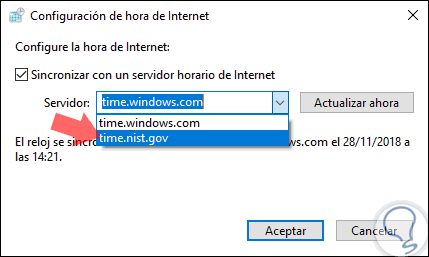 4. Editar la hora del servidor de Internet en Windows 10 para solucionar error al sincronizar hora